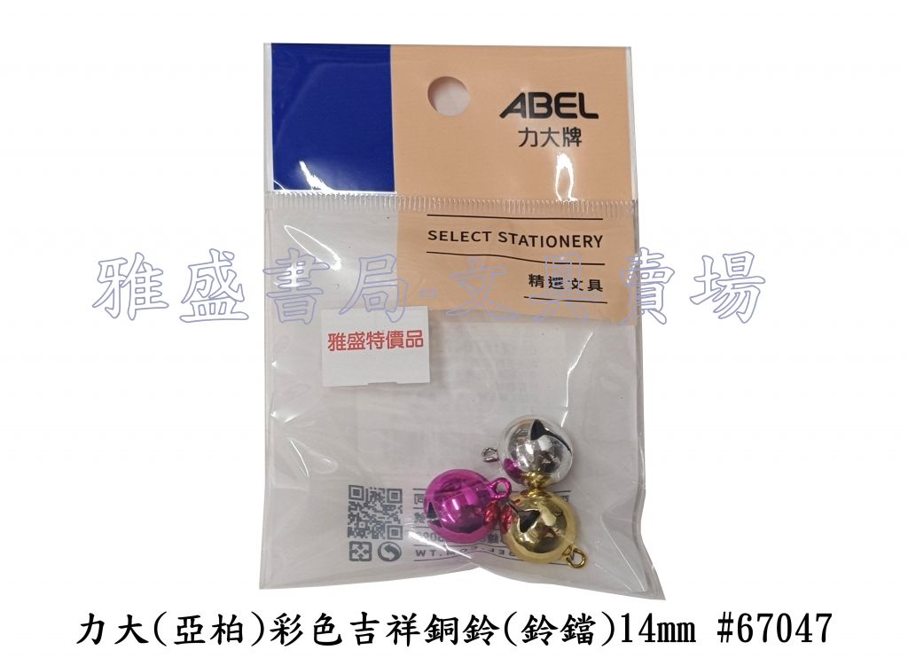 力大(亞柏)彩色吉祥銅鈴(鈴鐺)14mm #67047
