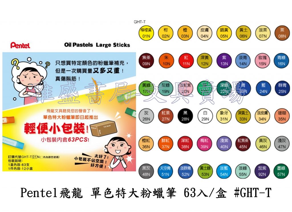 Pentel飛龍特大粉蠟筆63入/盒-單色 #GHT-T