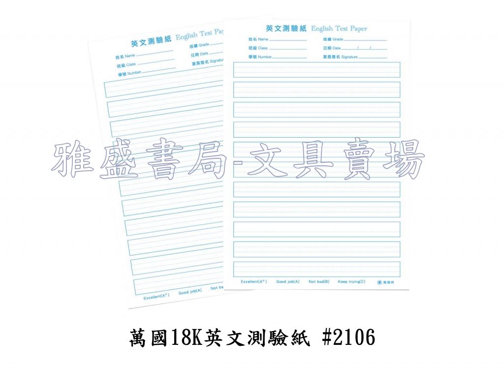 萬國 18K英語測驗紙 #2106