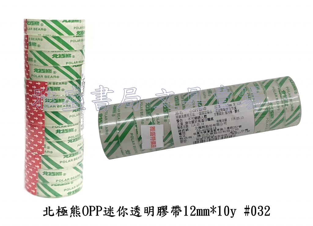 北極熊OPP迷你透明膠帶12入12mm*10y #PPT1210X同#032
