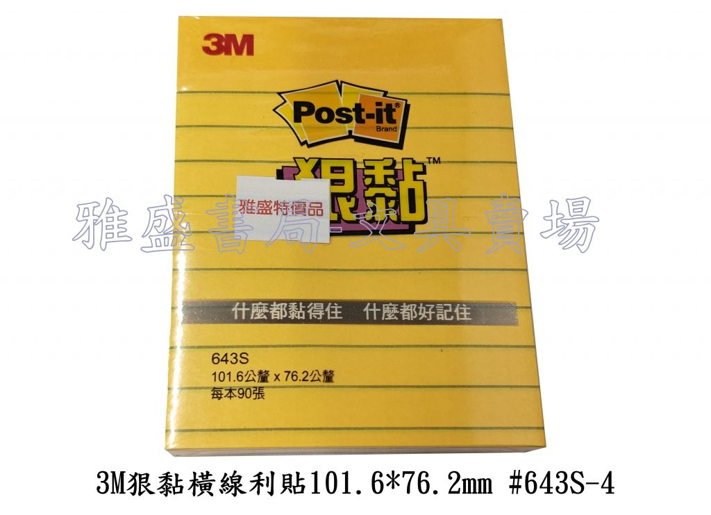 3M狠黏利貼便條紙-橫線101.6*76.2mm #643S-4