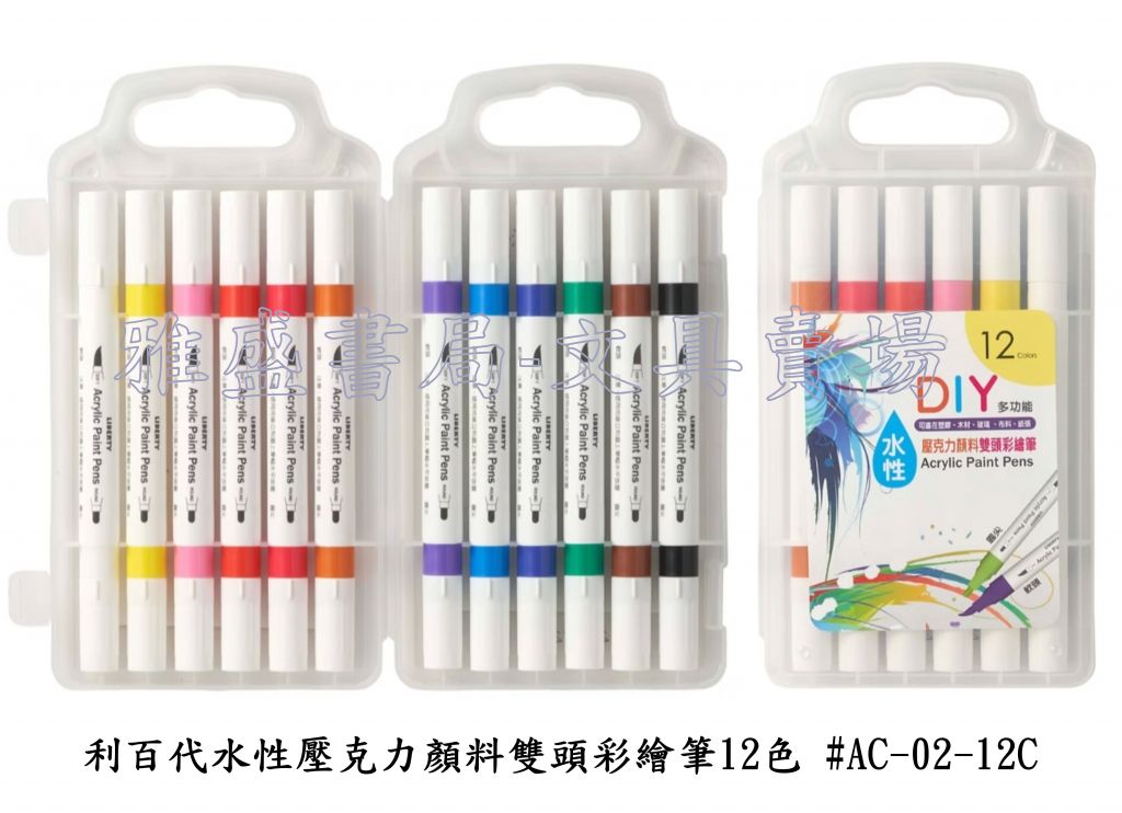 利百代水性壓克力顏料雙頭彩繪筆12色 #AC-02-12