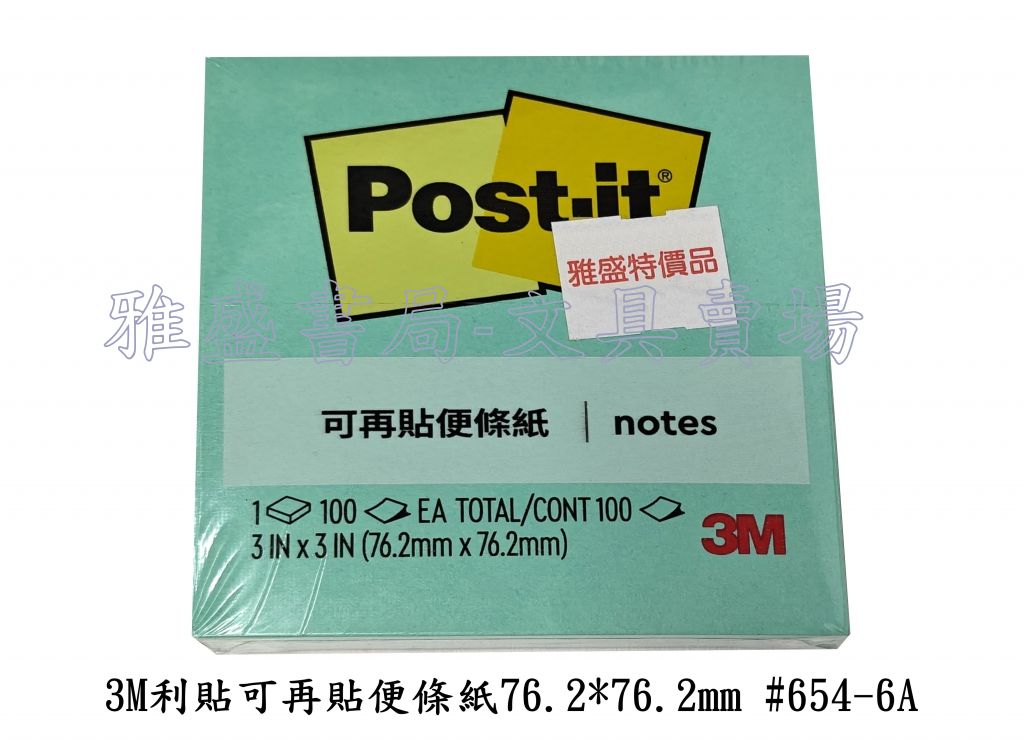 3M利貼可再貼便條紙76.2*76.2mm #654-6A