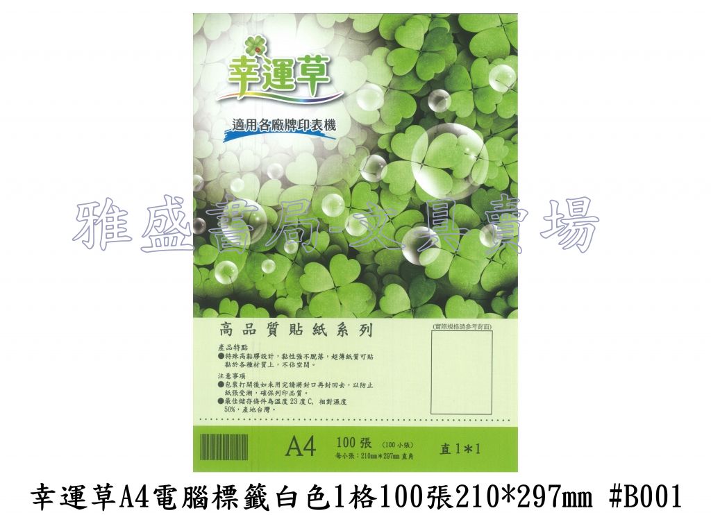 利偉幸運草A4電腦標籤白色1格(210*297mm) 100張 #B001