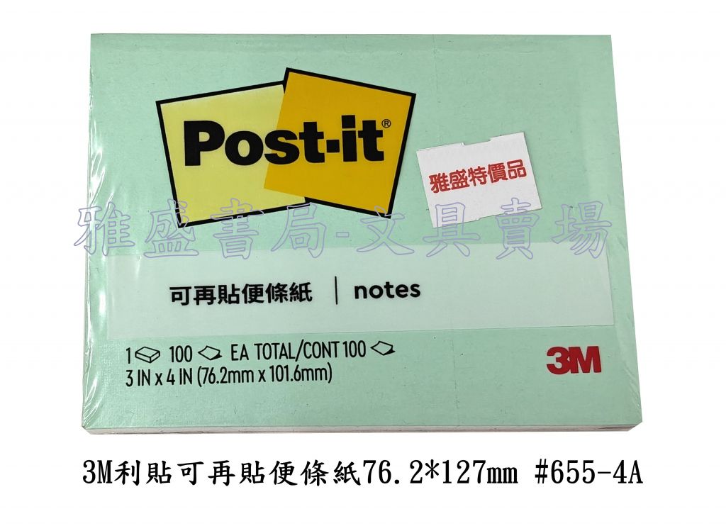 3M利貼可再貼便條紙76.2*127mm #655-4A