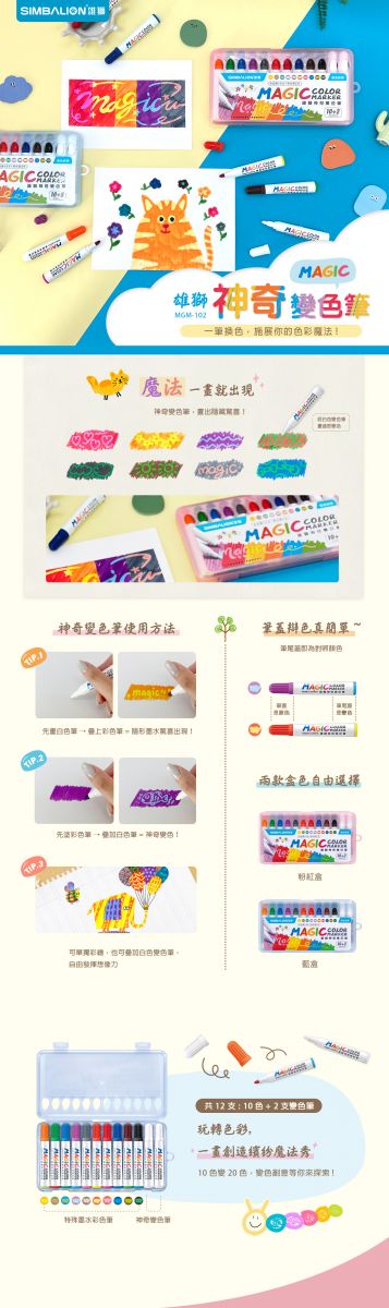 產品名稱:雄獅神奇變色筆10+2色#MGM-102