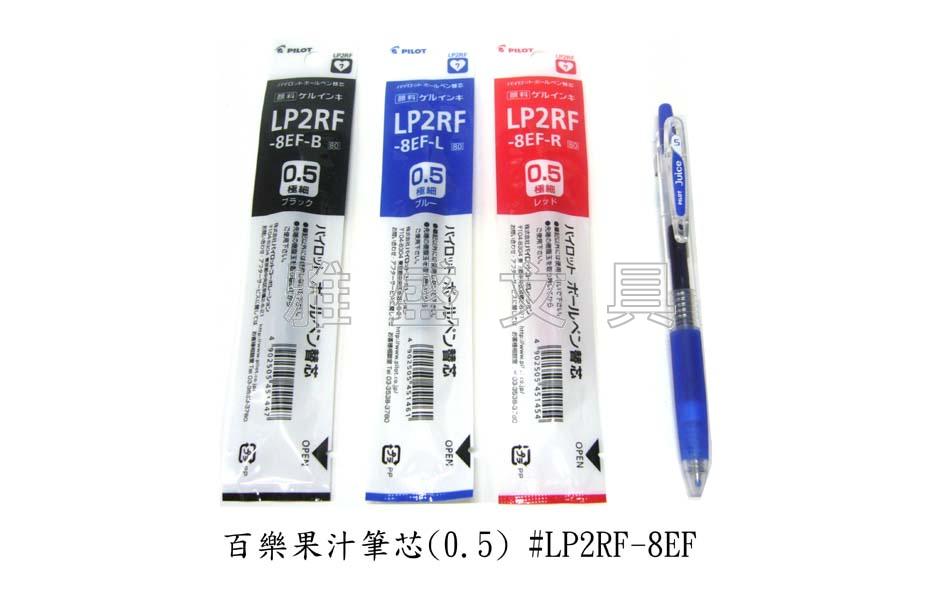 產品名稱:百樂Juice果汁筆芯0.5mm #LP2RF-8EF 產品型號:LP2RF-8EF 筆尖尺寸:0.5mm 筆芯顏色:藍、黑、紅 適用筆桿:百樂Juice果汁筆0.5 包裝單位:支;12支/盒 產品介紹: